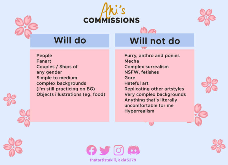 Character name:Character personality/description(s):Please give me everything you have on your character that you want me to have in mind when drawing them - also characters from series since I might not know them. You can also send me a youtube link to a video portraying the characters' personality. By sending this order you confirm that you have read and accept the terms of service for commissioning me.You can place multiple orders in one mail, just include the above info multiple times.Please include reference images of your character(s). If there is anything specific you would like me to get inspired from (e.g. environment for background or stock images for poses) please include them as well.